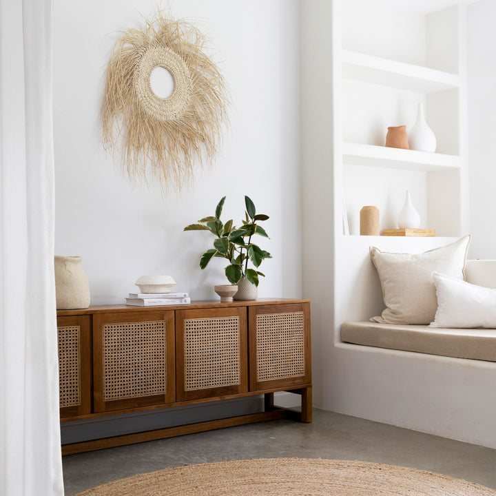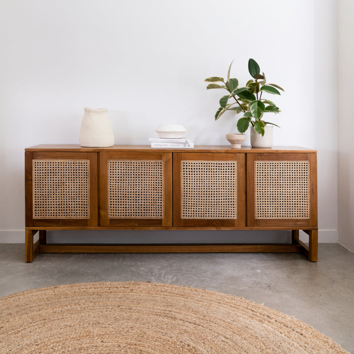 Our stunning Taya teak buffet is the perfect piece for your home. With a stunning mix of rattan and plantation teak this is a heirloom pieces that will last for generations